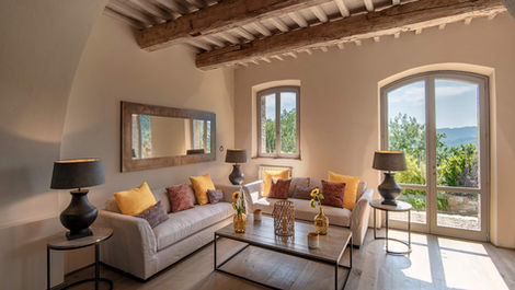 Occupying an unrivalled position on a hilltop above the Tiber Valley, Villa Castiglione Ugolino is one of the most historically resonant properties in Umbria — an 11th-century castle, complete with its original bell tower and an annexed frescoed church, painstakingly and lovingly restored into a villa of ten bedrooms and exceptional spaces. Vaulted ceilings, reclaimed terracotta floors, travertine marble staircases and 13th-century frescoes give the interiors a rare quality: luxurious without ostentation, grounded in centuries of Umbrian stone and craft. Outside, a manicured private garden opens onto a 14-metre infinity pool that appears to dissolve into the rolling panorama of fields, olive groves and distant hills. Add to this the resources of the wider Tenuta di Murlo estate — 18,000 acres of valleys, rivers, and olive groves, with the Il Caldaro restaurant and the Antognolla Golf Course within easy reach — and the result is a stay of quite singular richness.