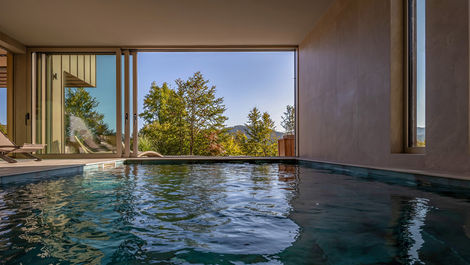 Heated indoor pool & sauna — swim beneath soft light or unwind in mountain warmth